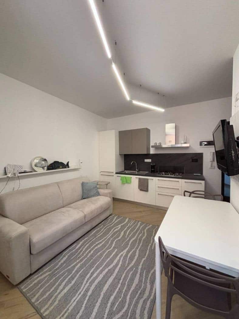 Totalmente ristrutturato, sala con angolo cottura , due camere e due bagni. La suddivisione degli spazi e’ davvero ben studiata e permette il massimo del confort.