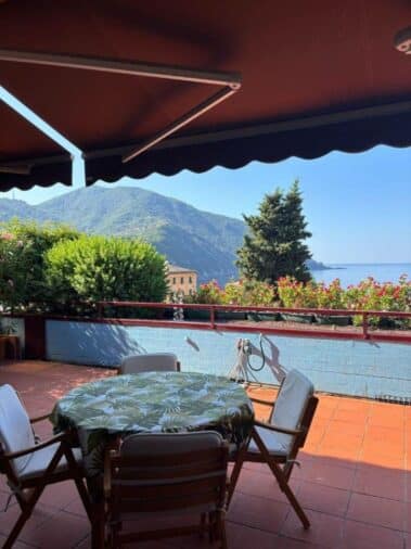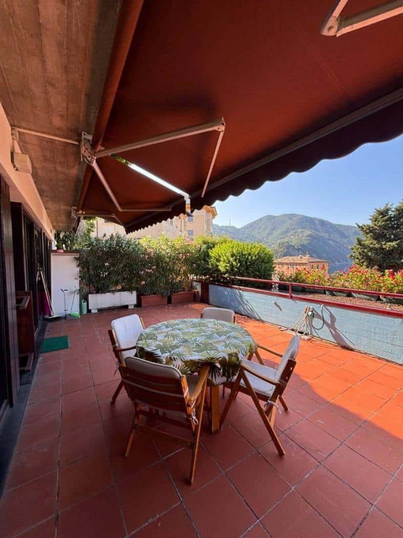Magnifico terrazzo di 30 mq circa con splendida vista mare. La proprietà è dotata di box e cantina. Caratteristiche rare da trovare in centro a Camogli. Bella la zona condominiale con un bel giardino a disposizione dei pochi appartamenti del condominio