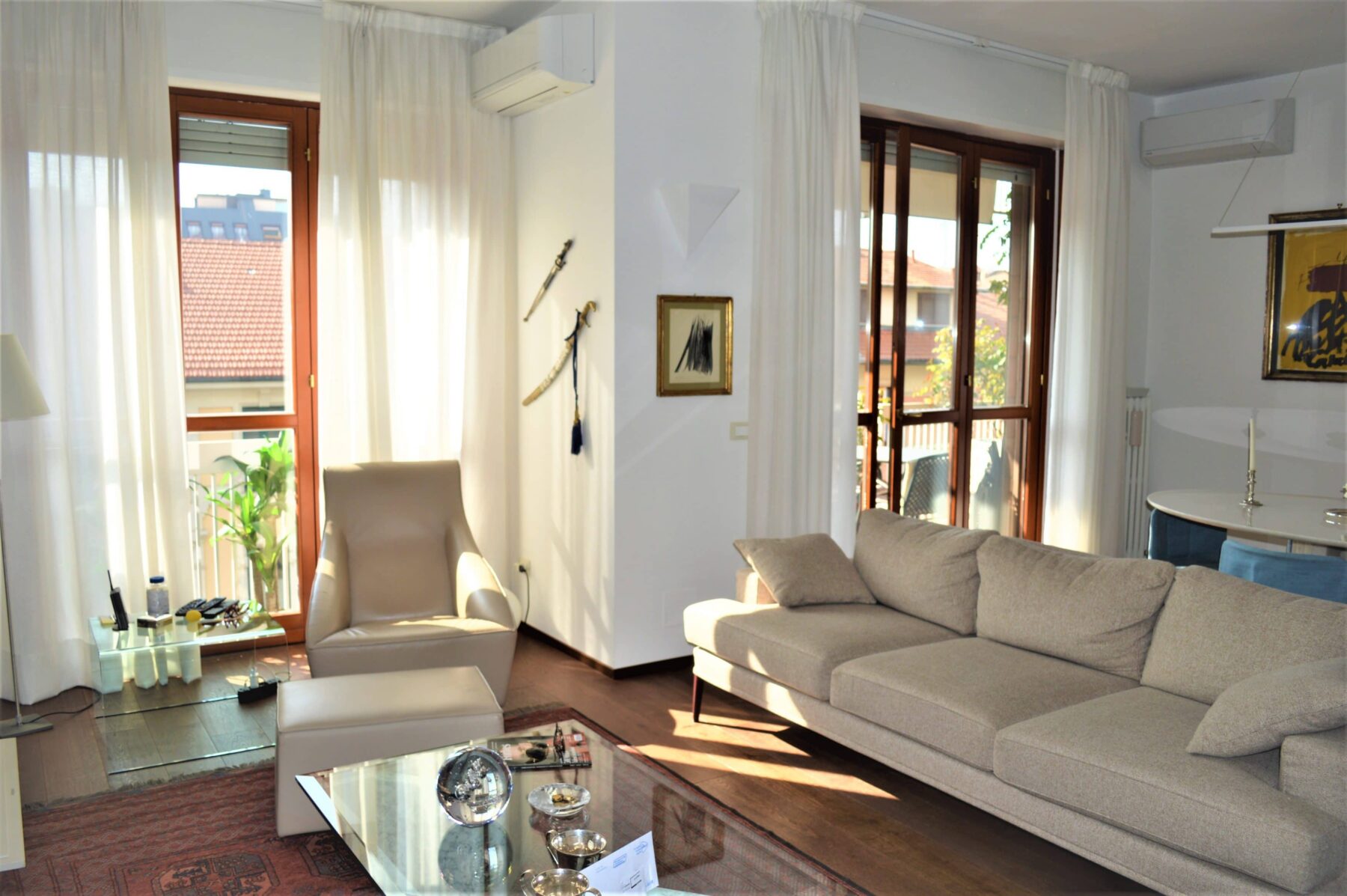 In palazzo signorile con servizio di portineria tutto il giorno e doppi ascensori, appartamento al quarto piano mq 145 commerciali di recente ristrutturazione, composto da soggiorno doppio, cucina abitabile, camera matrimoniale, bagno padronale, seconda camera con bagno e cabina armadio dedicati. Ampie balconate/terrazzino. Tripla esposizione, luminosissimo. Finiture di qualità, pavimenti in parquet, aria condizionata. Cantina di pertinenza. Possibilità box in zona.