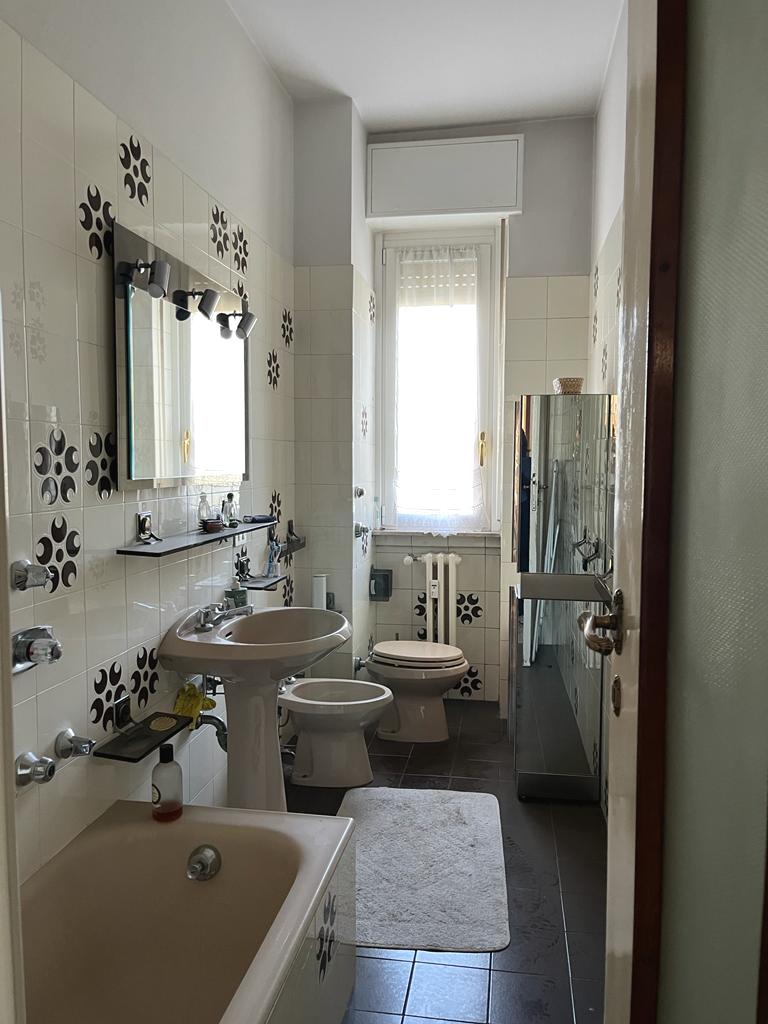 In bel palazzo anni ’50 (ecobonus 110 appena approvato) con servizio di portierato ed ascensore, proponiamo in vendita appartamento sito al 3° piano composto da soggiorno, cucina abitabile, 2 camere, studio, bagno e balcone. Luminoso, tripla esposizione. Completano la proprietà cantina e possibilità box (€ 35.000). Immobile internamente da rivedere.