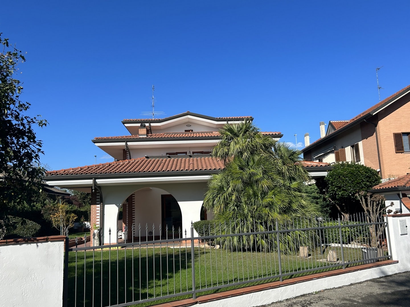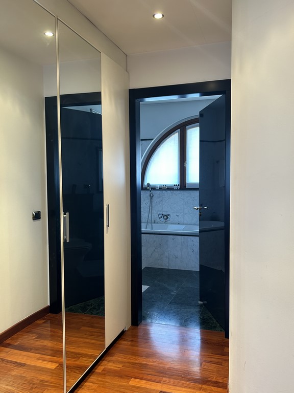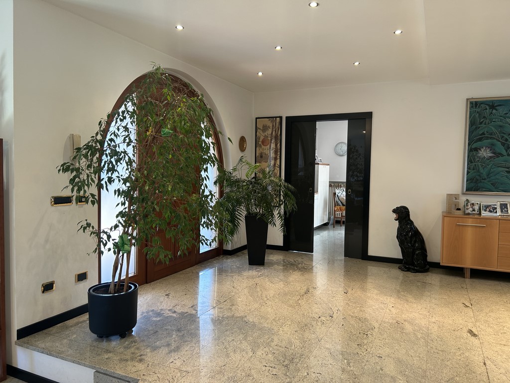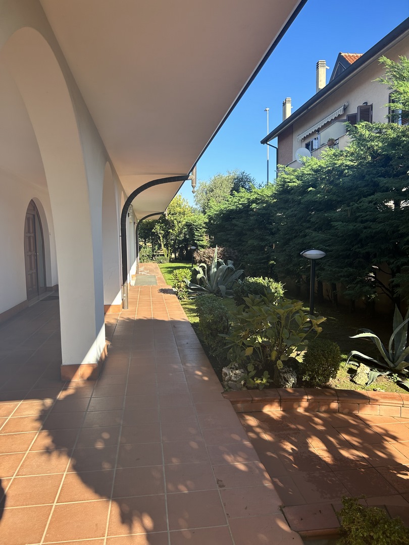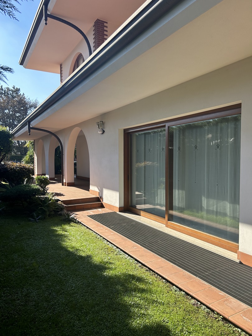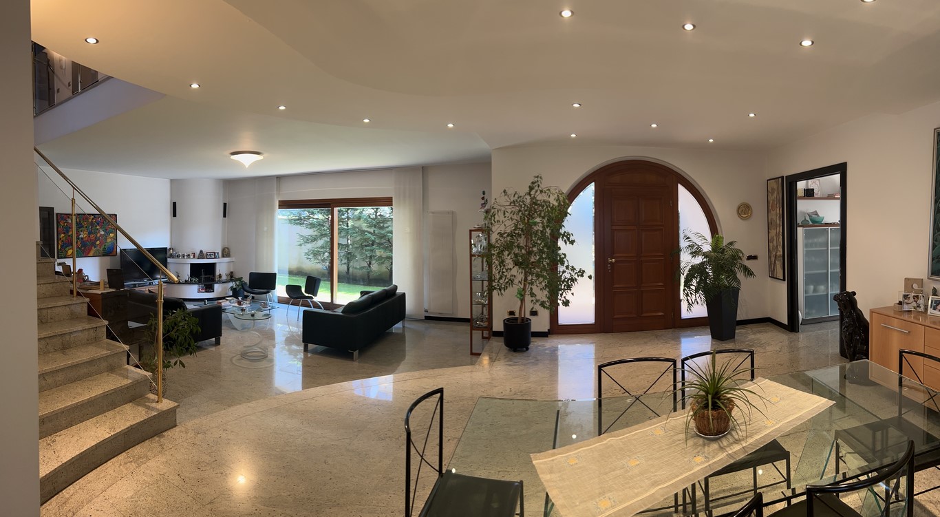 In zona tranquilla comoda ottimamente servita dalle principali vie di comunicazione, servizi e attività commerciali, nelle immediate vicinanze con 2 accessi di cui uno da via privata, bellissima villa su 4 livelli con giardino privato. Abitazione di 430 mq circa oltre giardino privato di 400 mq circa, disposta su 4 livelli collegati da bellissime scale interne in cristallo e ottone. Piano terra ampio soggiorno con camino e zona pranzo, cucina abitabile, studio (con possibilità d’ingresso indipendente), bagno ospiti completo di vasca e doccia. Primo piano con 3 camere da letto in parquet legno massello tutte con cabina armadio e bagni dedicati (suite padronale con vasca Jacuzzi) ognuna con accesso al proprio terrazzo. Secondo piano locale openspace (predisposizione ulteriore bagno) con doppia esposizione oltre a 2 terrazzi. Completa la proprietà il piano interrato composto da grande taverna con finestre, camino passante, zona lavanderia, camera di servizio, bagno, locale polifunzionale con porta blindata, acceso diretto all’autorimessa con capienza di 8/9 automobili. Finiture di livello quali pavimenti zona giorno in marmo Kashmir white, bagni realizzati in marmo rosa Portogallo, in marmo di Carrara e verde Guatemala, marmo Beole verde Vallespluga, porte interne Garofoli, impianto di aspirapolvere centralizzato . Riscaldamento e raffrescamento autonomi. Impianto antintrusione, porta blindata. La villa è stata progettata per una possibile suddivisione in due unità.