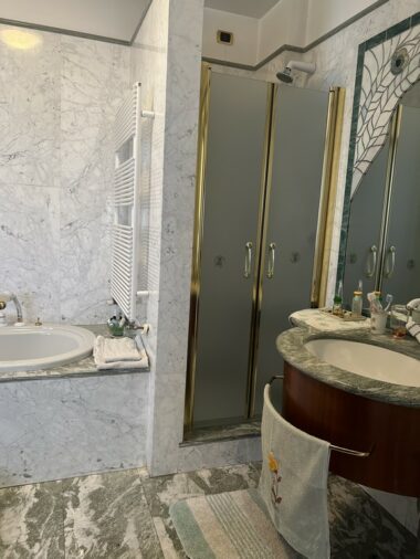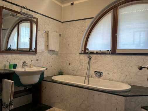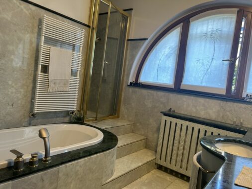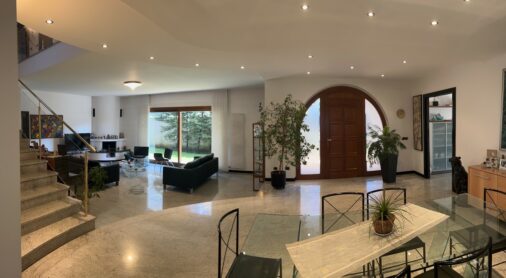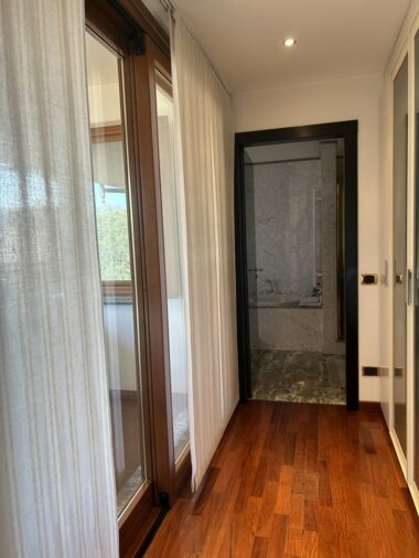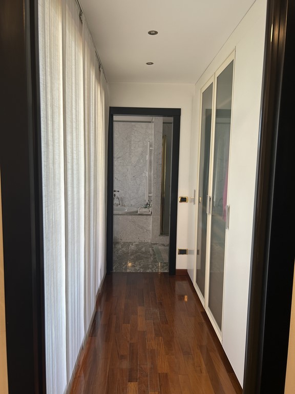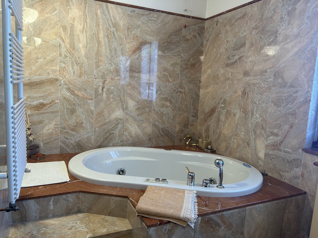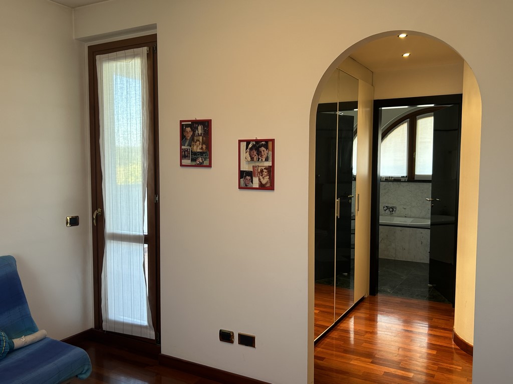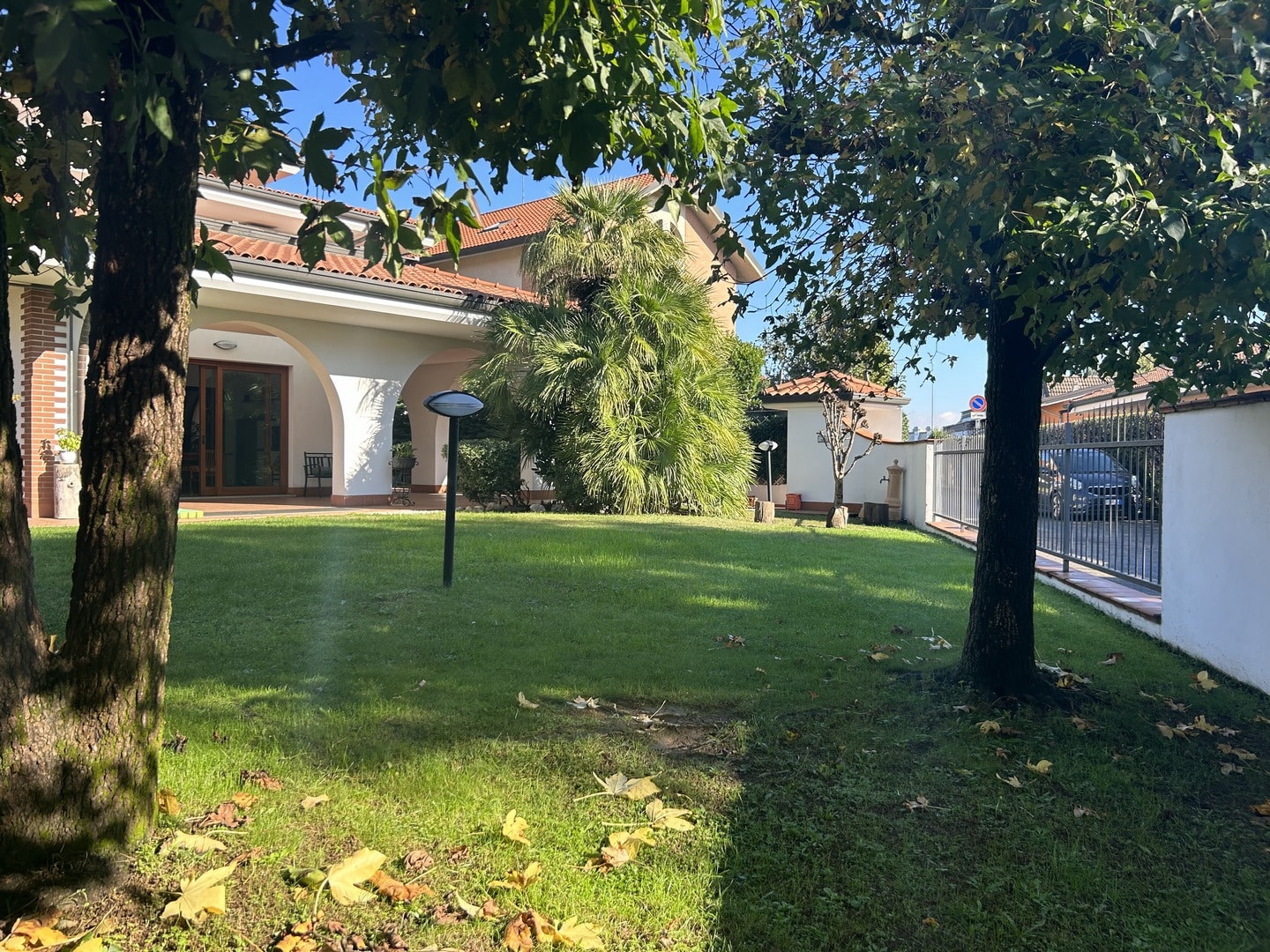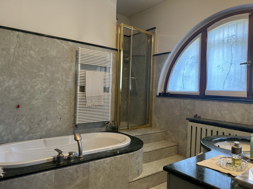 In zona tranquilla comoda ottimamente servita dalle principali vie di comunicazione, servizi e attività commerciali, nelle immediate vicinanze con 2 accessi di cui uno da via privata, bellissima villa su 4 livelli con giardino privato. Abitazione di 430 mq circa oltre giardino privato di 400 mq circa, disposta su 4 livelli collegati da bellissime scale interne in cristallo e ottone. Piano terra ampio soggiorno con camino e zona pranzo, cucina abitabile, studio (con possibilità d’ingresso indipendente), bagno ospiti completo di vasca e doccia. Primo piano con 3 camere da letto in parquet legno massello tutte con cabina armadio e bagni dedicati (suite padronale con vasca Jacuzzi) ognuna con accesso al proprio terrazzo. Secondo piano locale openspace (predisposizione ulteriore bagno) con doppia esposizione oltre a 2 terrazzi. Completa la proprietà il piano interrato composto da grande taverna con finestre, camino passante, zona lavanderia, camera di servizio, bagno, locale polifunzionale con porta blindata, acceso diretto all’autorimessa con capienza di 8/9 automobili. Finiture di livello quali pavimenti zona giorno in marmo Kashmir white, bagni realizzati in marmo rosa Portogallo, in marmo di Carrara e verde Guatemala, marmo Beole verde Vallespluga, porte interne Garofoli, impianto di aspirapolvere centralizzato . Riscaldamento e raffrescamento autonomi. Impianto antintrusione, porta blindata. La villa è stata progettata per una possibile suddivisione in due unità.