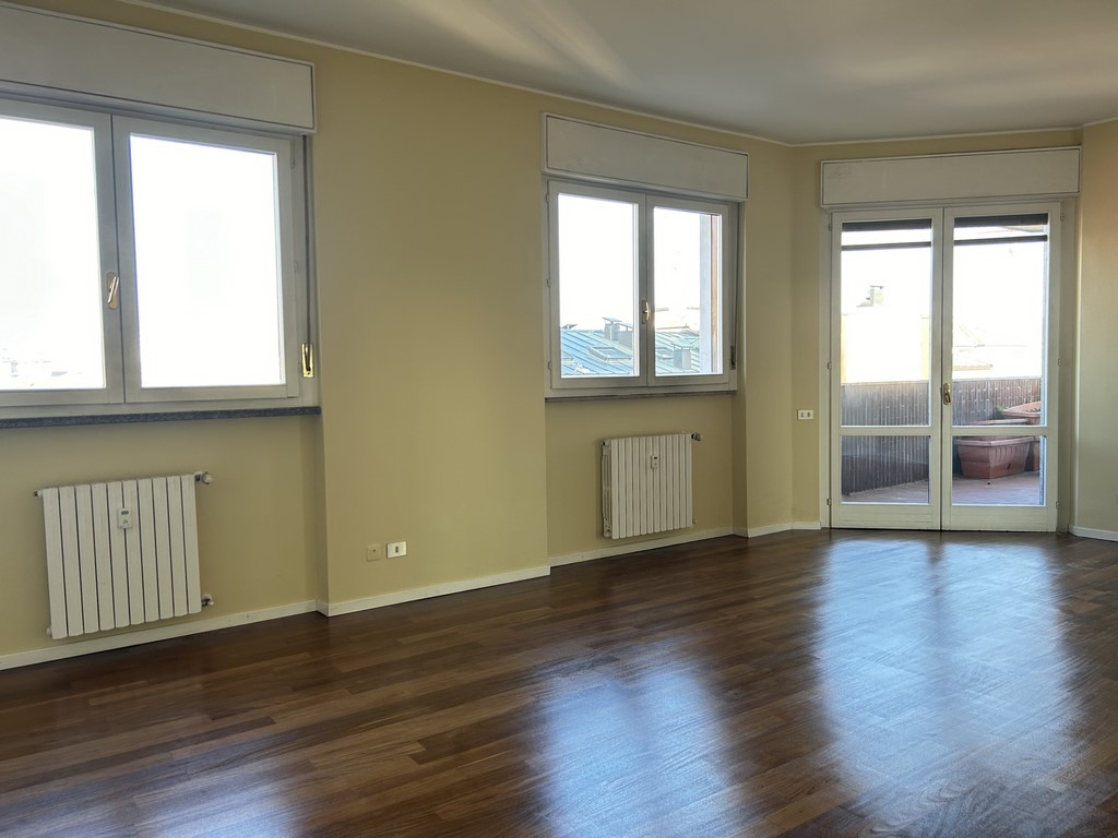 In palazzo signorile con portineria, ampio giardino condominiale e doppi ascensori, appartamento al 6° piano mq 135 circa composto da soggiorno doppio, cucina abitabile arredata, 3 camere ( di cui una attualmente adibita a cabina armadio ) 2 bagni, ripostiglio, 2 terrazzini, cantina e box. Appartamento in ottime condizioni, parquet appena rifatto, tapparelle elettriche, aria condizionata, tripla esposizione, silenzioso e luminoso. L’immobile viene consegnato imbiancato.